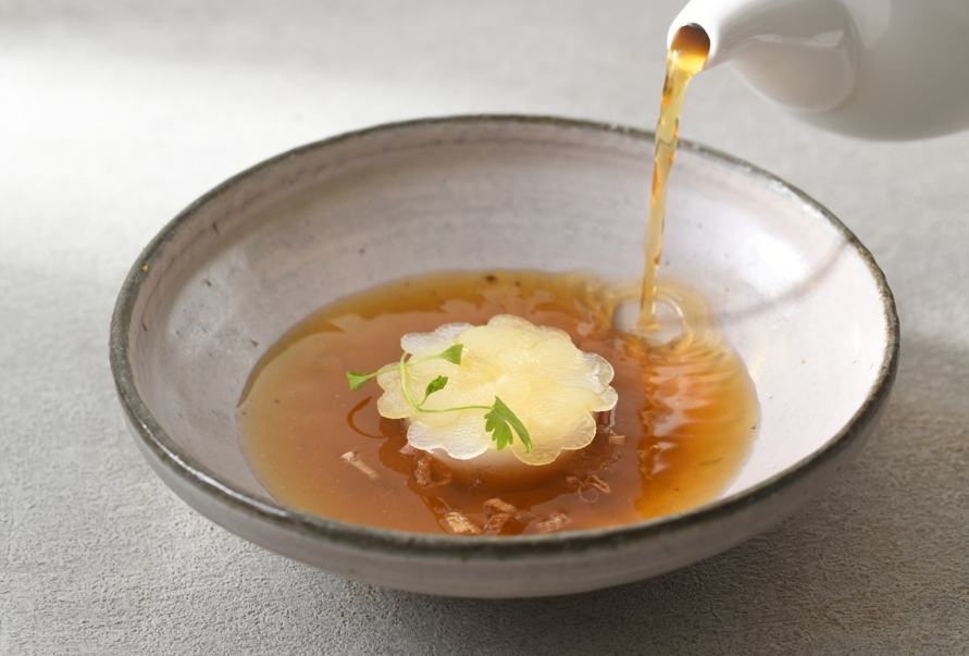 尋味歲月珍藏,為一年封存一份圓滿滋味。 年節的尾聲,是回望與收藏的時刻。那些經過時間洗鍊的風味,總在靜靜之中展現深度與力量。The One 食藝團隊 以《歲藏佳釀餐會》為題,選擇歷經歲月醃藏的老蘿蔔乾,搭配溫潤甘甜的地瓜酒,將時間轉化為餐桌上的細膩風味。從 蘿蔔乾奶油水潤餅 的鹹香柔滑、大地時蔬沙拉 的清新平衡,到 十年老蘿蔔手工麵 的深厚回甘,一道道料理鋪陳出歲月沉澱後的從容與圓熟。 在這場餐會中,味道不再張揚,而是緩慢展開;如同收藏一年中的片段,將美好悄悄留存。