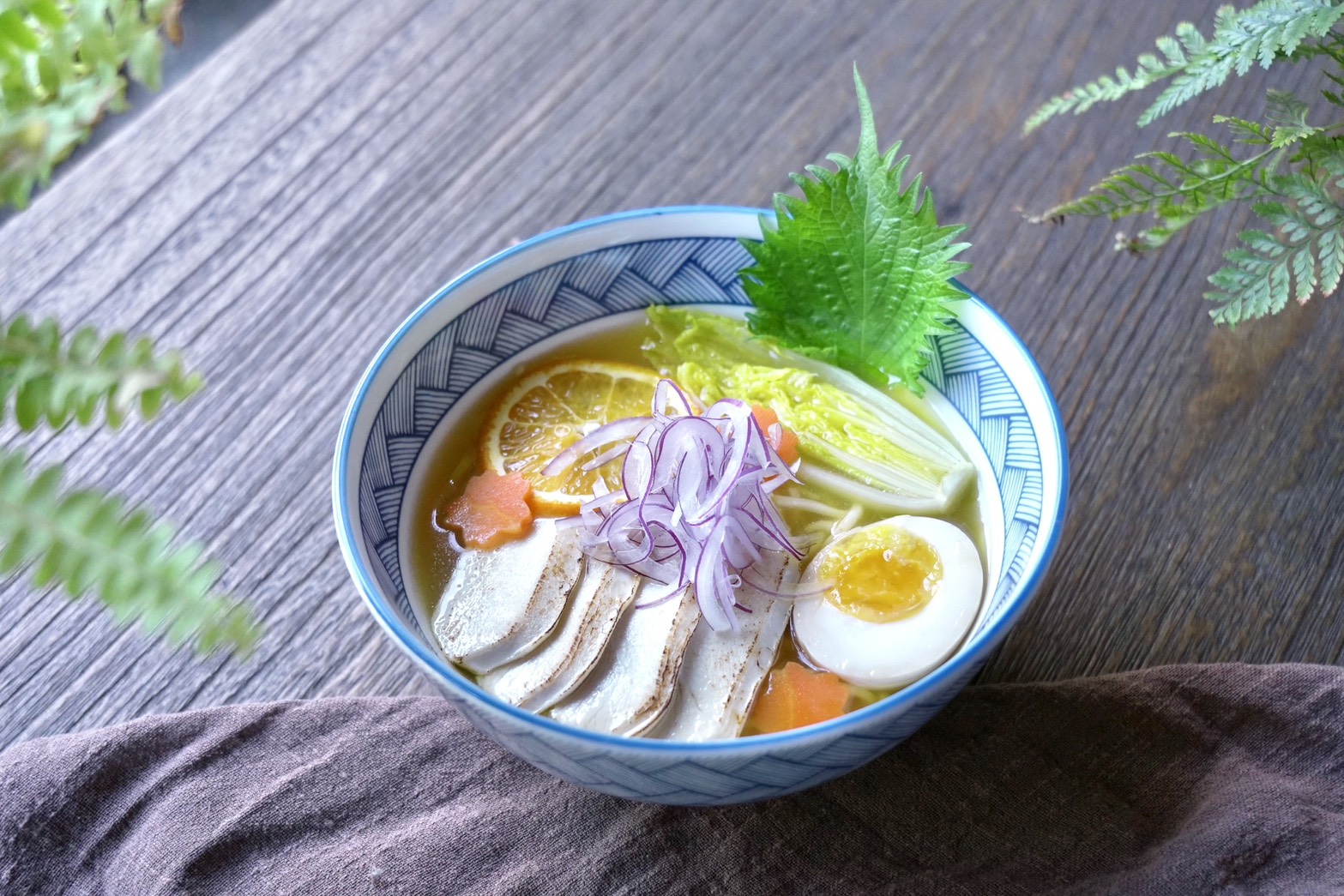 以峨眉鄉農會 100% 桶柑果汁為湯底靈魂,融合 6 小時細火熬煮的老母雞湯,清新果香與醇厚旨味交織平衡。選用北投來來桶柑拉麵,搭配慢煮雞胸、溏心蛋與季節時蔬相互襯托,使湯麵在清爽與濃郁之間取得恰到好處的層次。這是一道溫柔卻富有深度的主菜,讓柑橘以溫潤姿態,緩緩展現其另一種風味。