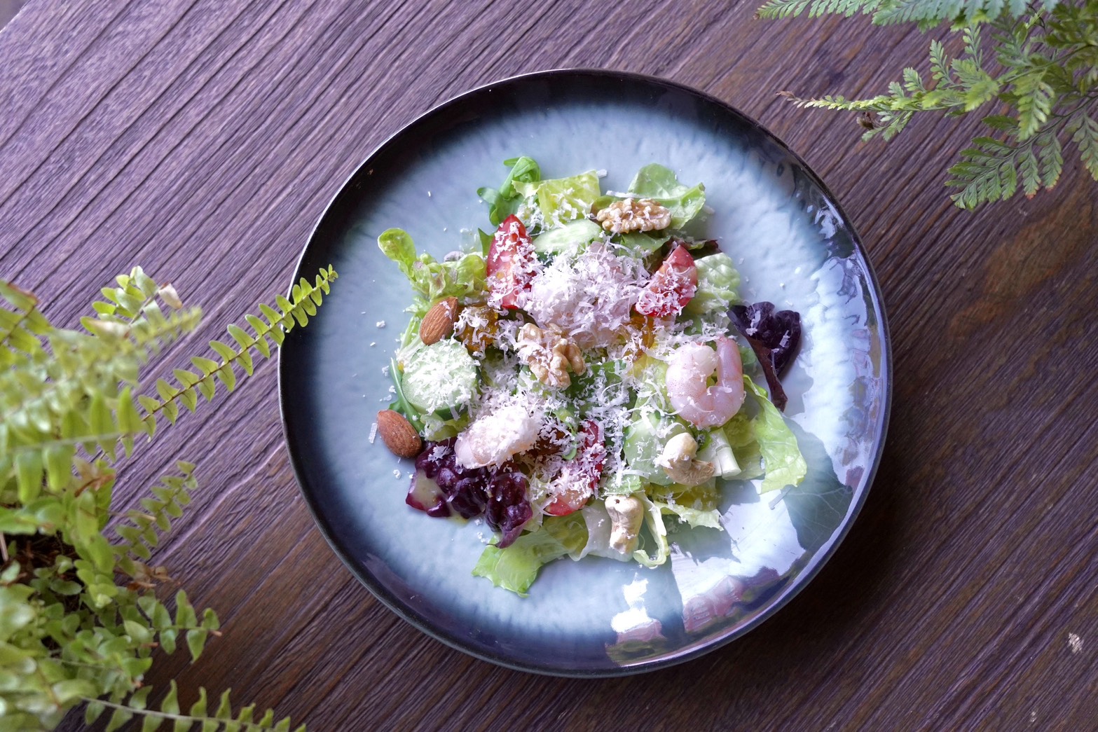 爽脆的當季時蔬為基底,搭配鮮甜白蝦與堅果,交織出豐富而分明的口感層次。選用「梅開四度」的「三金柑桔醬」,以臍橙與椪柑為主調,融合台灣金門 58 高粱酒的醇厚芳香,調製成細緻的柑橘油醋。酸桔丁與帕馬森起司輕巧點綴,讓明亮果香在蔬食之間流轉,清新而不失深度。