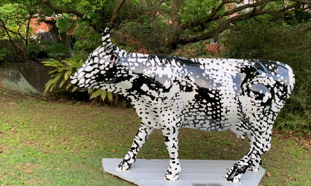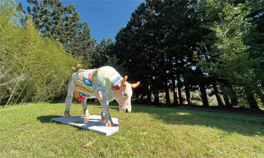 以宇宙神秘的暗色作為背景,牛身以金漆勾勒出天文鐘的輪廓,若曾到訪捷克布拉格旅遊,不難認出此鐘即是全球唯一還在運行的天文鐘古蹟──布拉格天文鐘。