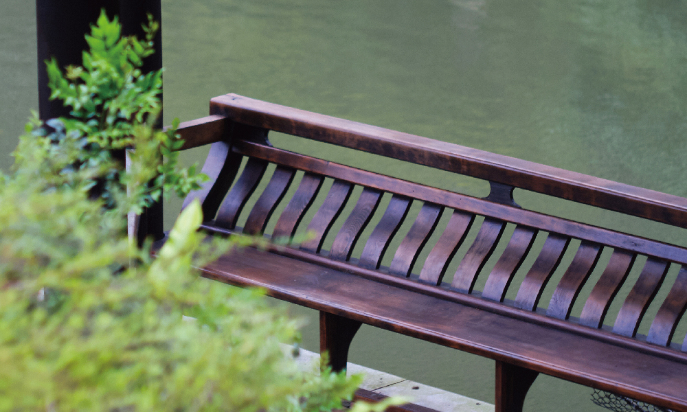 臨湖而建,鵝頸椅故名思義有著輕柔的流線設計,支撐背部的木條彎曲探出似鵝頸,稍一探頭,便有倒影映於水面,仕女倚欄而歇彷彿世間雅景,故又名美人靠。