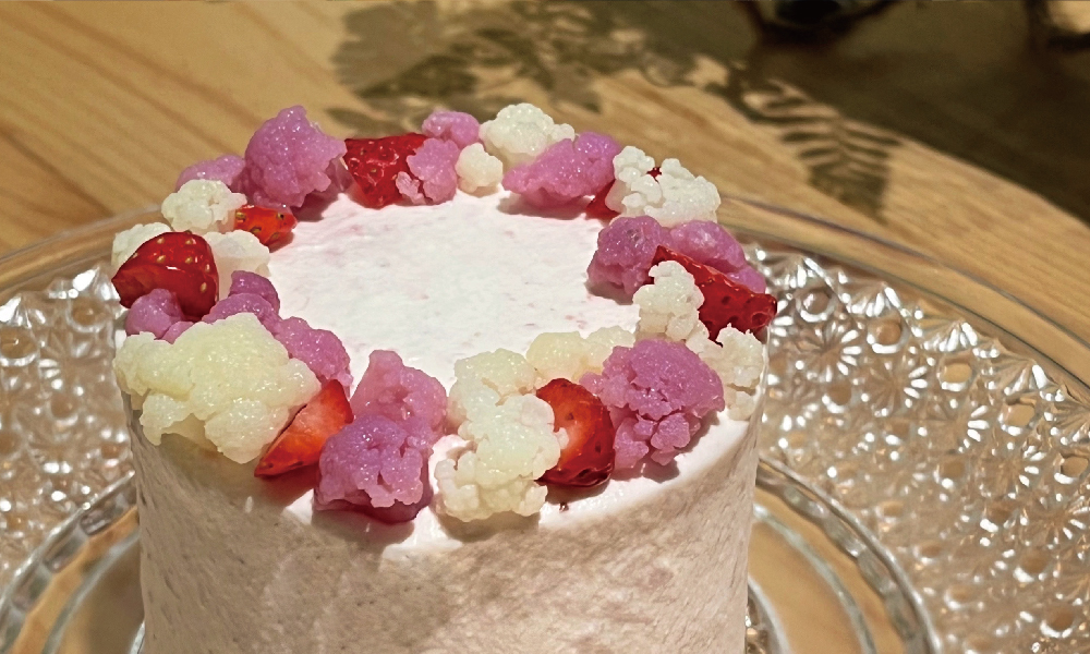 滑過絲柔的淡粉色奶油,抿了抿蛋糕叉,一陣草莓甜香盈滿鼻腔。