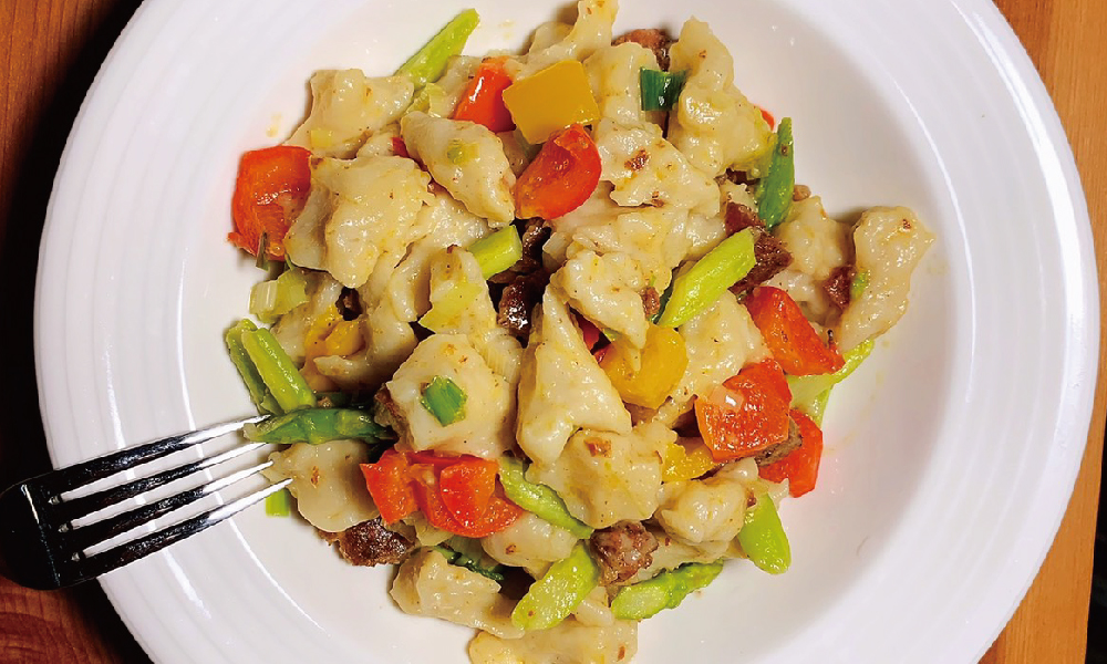 川味花椒香腸之繽紛青蒜蘆筍甜椒麵疙瘩