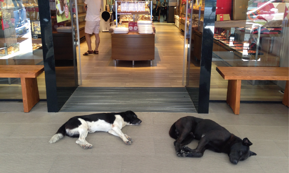 牠們平常居無定所,有時睡在機車店門口、有時睡在便當店旁,但只要夏天天氣一熱,牠們就一定會到暖暖街上的珍味香餅舖前躺著……