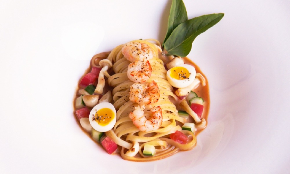 炎炎夏日,一碗的冰涼的冷麵下肚最是消暑,有別於傳統臺式涼麵的芝麻醬、日式涼麵的和風醬,「山坡上小廚房」的杏仁米麵,即是以自家手作杏仁醬調和成拌醬。