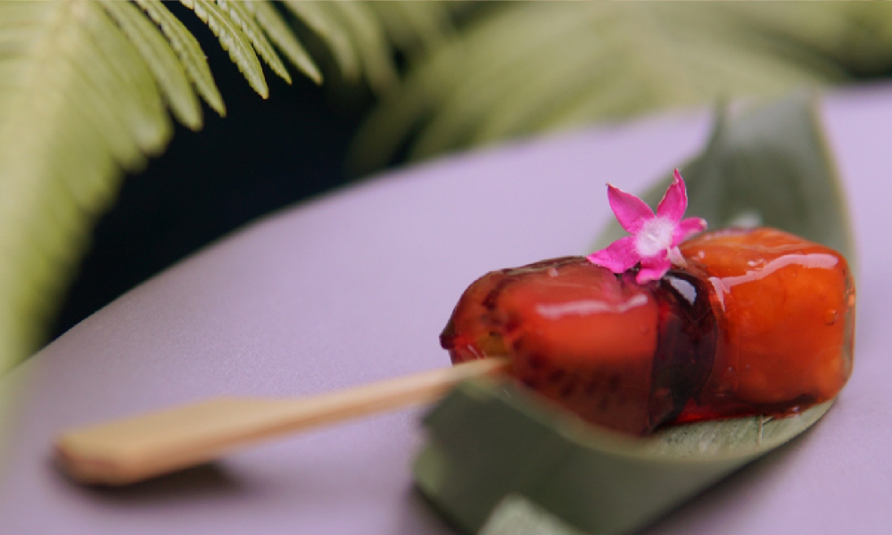 The One食藝團隊以清爽的夏季水果作為發想,「自然甜芒果羊羹」、「自然甜紅心芭樂羊羹」旋即誕生。